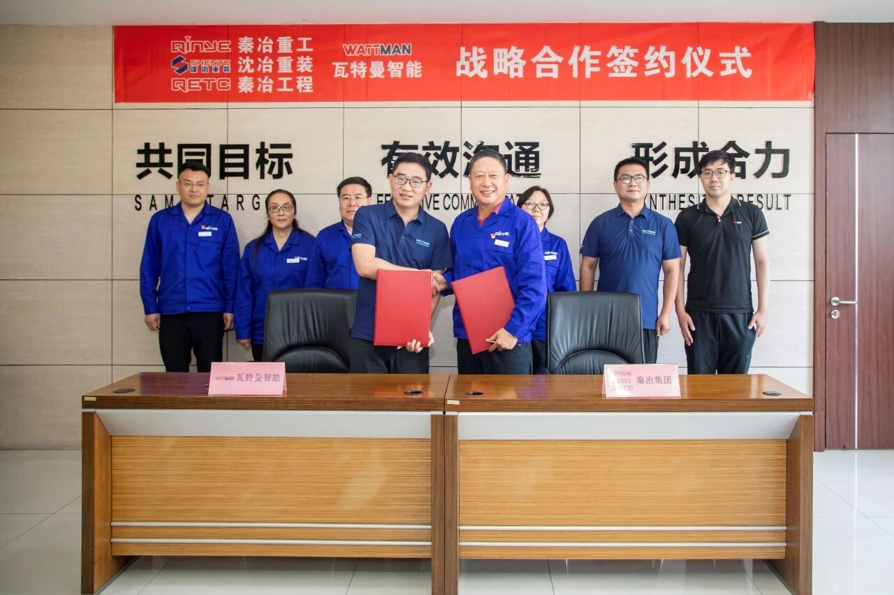WATT时刻∣瓦特曼智能与秦冶集团签署战略合作框架协议,赋能冶金重装行业智能化转型发表时间:2025-06-04 10:16 5月29日,瓦特曼智能与秦冶集团在秦冶重工会议室签署战略合作框架协议。本次协议签署以“携手共进 打造冶金重装高端智能装备”为主题,秦冶集团董事长陈晓光和瓦特曼智能创始人&CEO谭胜虎分别代表双方签署协议。 双方将充分发挥各自资源优势,在技术研发、市场拓展、资源协同等领域建立战略合作伙伴关系,开展深度合作,共同打造智能化解决方案,提升行业竞争力。